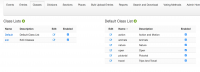 Class lists are shown on the left, individual classes on the right. The class list has only a short name (which can be used to control the sort order) and a description. Add a new Class or List by clicking the (+) icon at the top of the list. Edit an existing item by clicking the pencil icon show to its right.