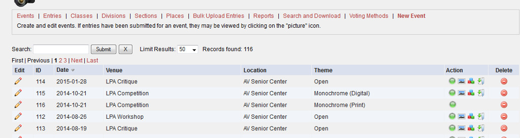 | View Entries | Click the picture icon to view the entries uploaded to this event. |